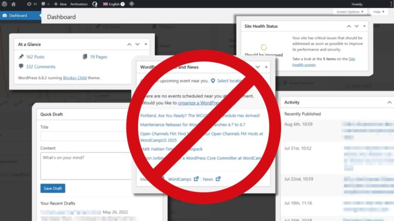 How to remove default and plugin WordPress dashboard widgets quickly using simple code in your functions.php file. Bye-bye bloated widgets!