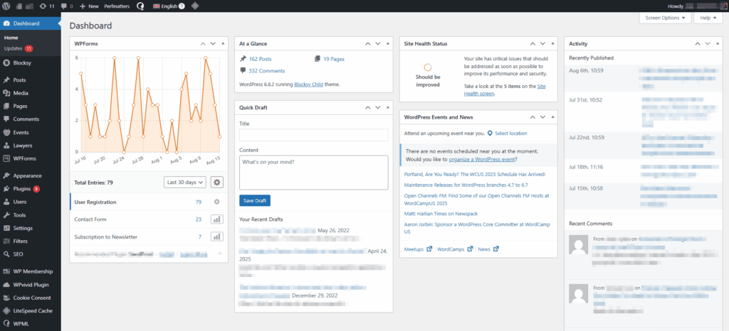 The WordPress Dashboard is packed with meta boxes, small floating widgets showing quick links, stats, and updates. While a few may be helpful, most go unused. Yet they still load every time you access the dashboard, adding unnecessary external (or internal) requests and SQL queries, slowing things down, and consuming server resources. And of course, many plugins and themes add their own meta boxes, which makes the problem worse.